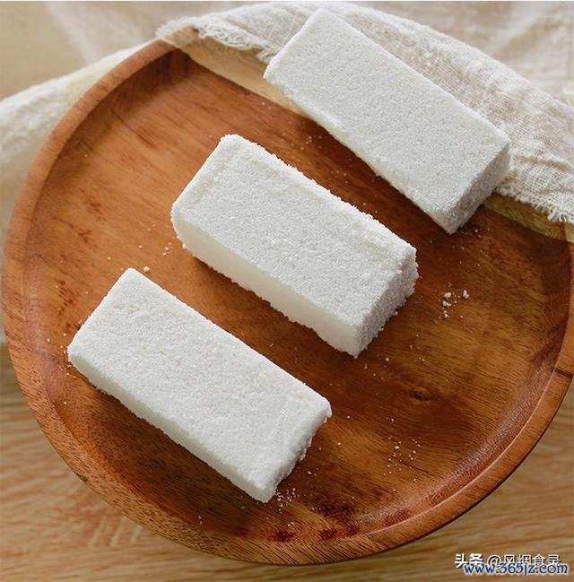 峨眉糕,外形整王人,呈条方形,色泽鲜明无瑕,宛如初雪遮掩下的峨眉山巅,清爽出浅浅的当然光辉。