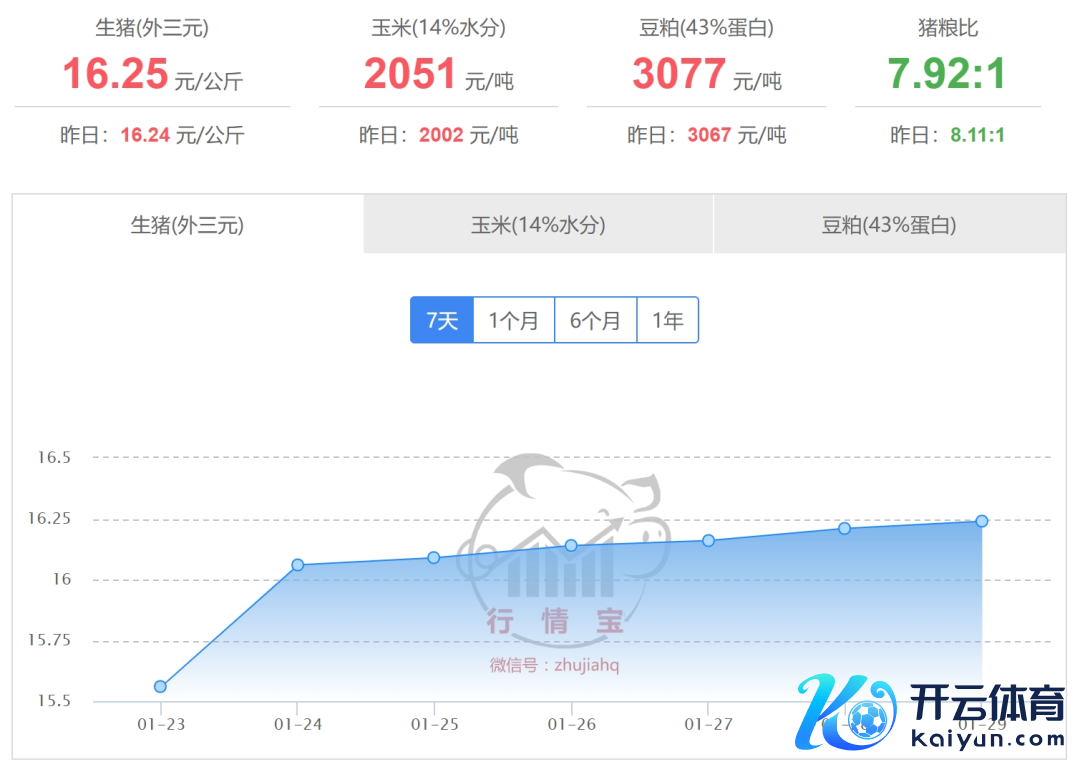 注:“红色字体暗意涨或平、绿色字体暗意跌”,数据开头于行情宝,生猪的价钱为“元/kg”,玉米、豆粕价钱单元为“元/t”,此价钱为生猪成交价钱,仅供参考。