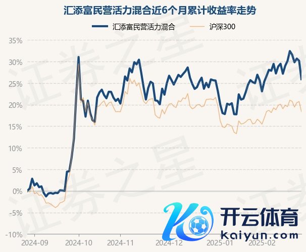 本站音讯,2月28日,汇添富民营活力羼杂最新单元净值为4.403元,累计净值为4.653元,较前一往将来下落3.27%。历史数据线路该基金近1个月上升0.23%,近3个月上升2.95%,近6个月上升25.91%开yun体育网,近1年上升19.35%。该基金近6个月的累计收益率走势如下图: