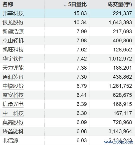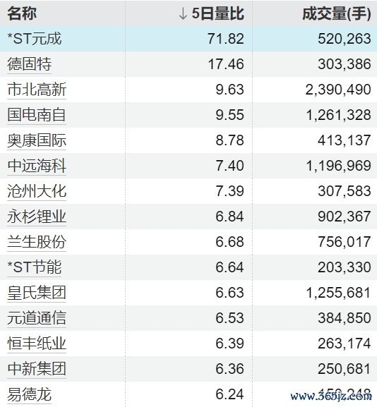 31只个股5日量比跳跃5倍