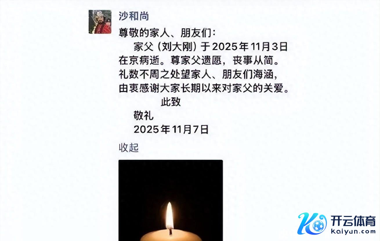 他的孩子在11月7日发出讣告,称刘大刚淳厚在11月3日的时间病逝。