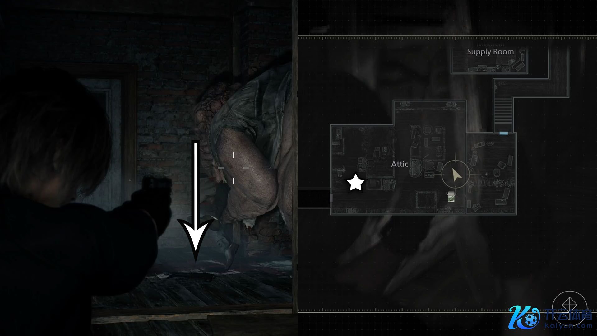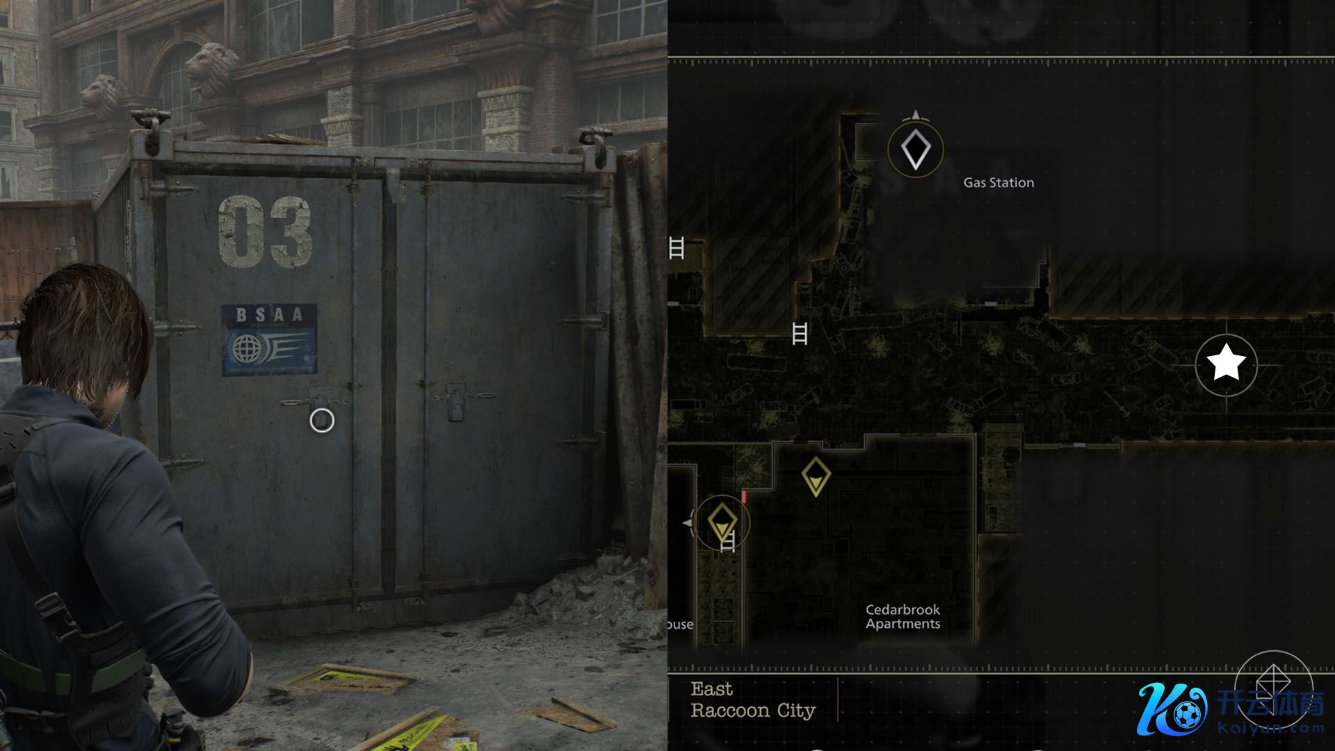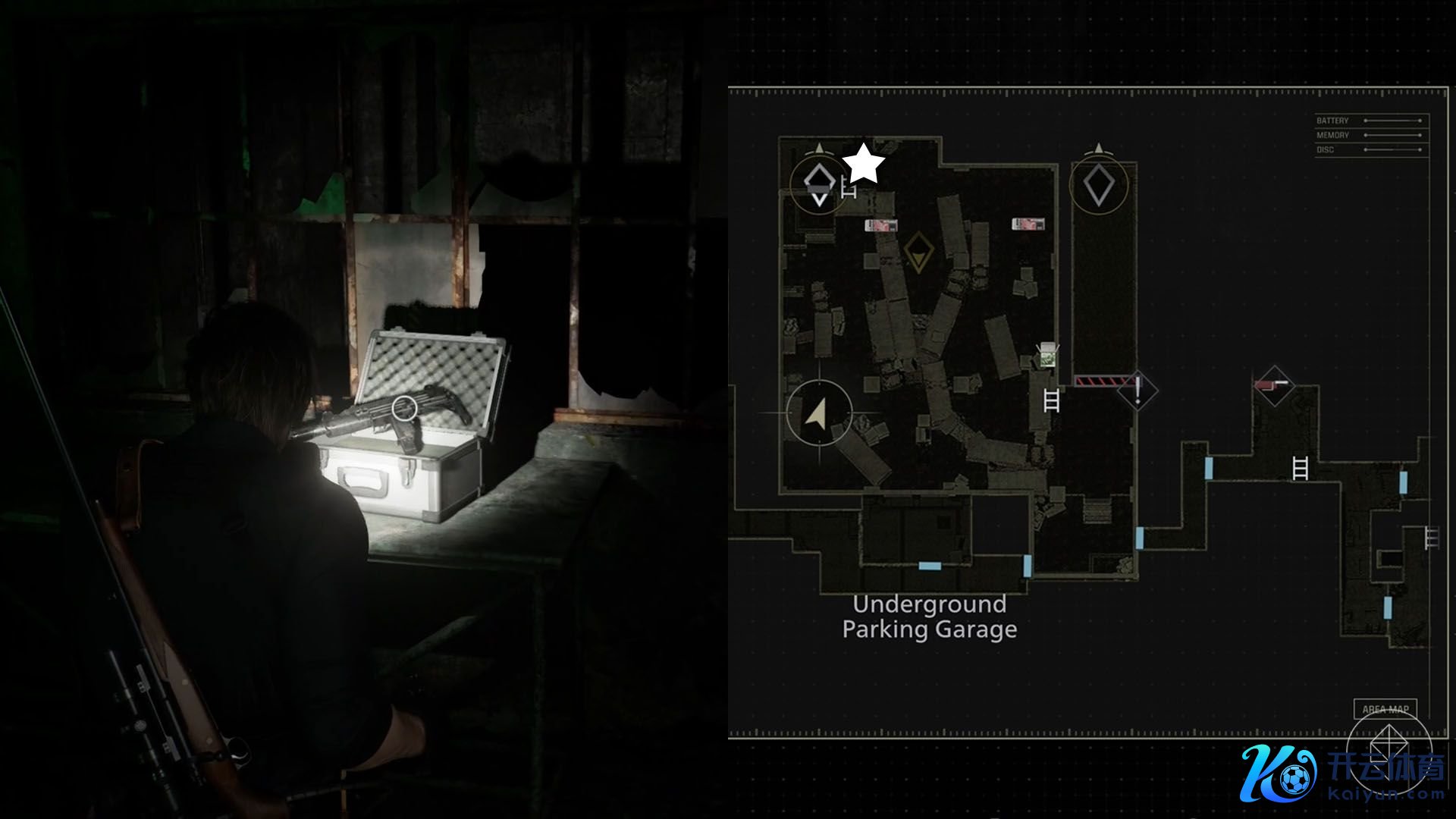 当你寻找开启加油站大门所需的电板之一时,你会探索一个尽是丧尸的水浸泊车场。在西北角的斗室间里,你会发现放在一个小公文包里的“盖尔”,这是你在《生化 9》中的第一把冲锋枪。