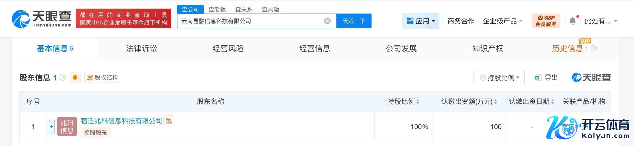 天眼查工商信息判辨,近日,云南昆融信息科技有限公司开拓,法定代表东说念主为季圣哲,注册本钱100万东说念主民币,见识范围含数据处置行状、信息期间征询行状、信息征询行状、大数据行状、互联网数据行状、收集与信息安全软件开发、数据处置和存储撑试验状、信息系统集成行状、东说念主工智能硬件销售等。鞭策信息判辨,该公司由京东旗下宿迁兆科信息科技有限公司全资执股。