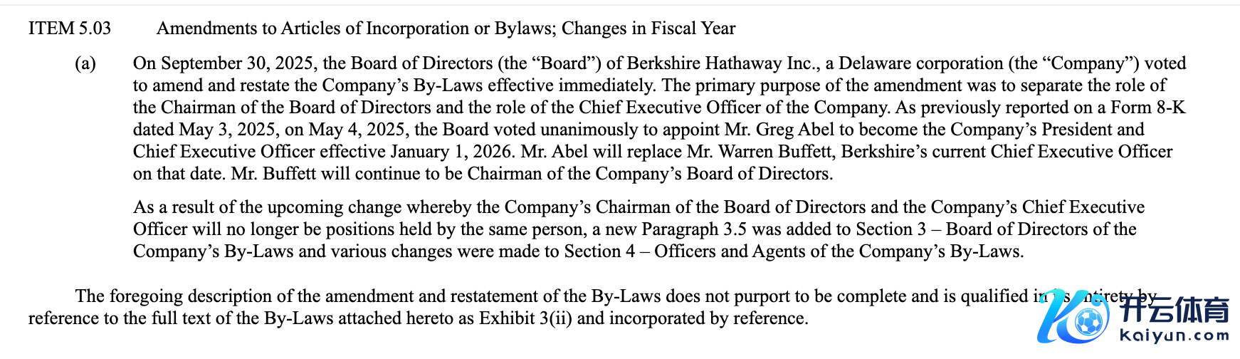 伯克希尔・哈撒韦修改公司规章,将董事长、首席践诺官职位分开伯克希尔・哈撒韦修改公司规章,将董事长、首席践诺官职位分开