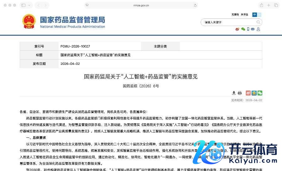 4月2日,国度药监局发布《对于“东谈主工智能+药品监管”的扩充见解》(以下简称《见解》),聚焦药品监管纠正的要点任务,以药品监管当代化为规画,薄情下一阶段监管数智化的七大约点标的。斟酌东谈主工智能时刻发展新趋势,薄情筑牢“东谈主工智能+药品监管”基础撑执的五项要点任务。