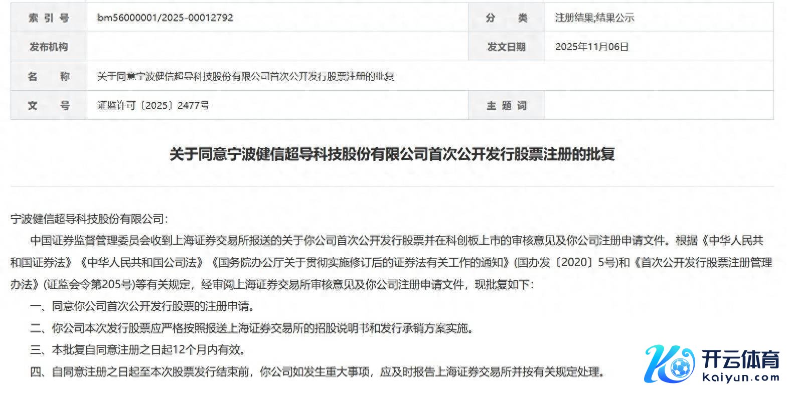 智通财经APP获悉,11月6日,中国证监会发布《对于欢跃宁波健信超导科技股份有限公司初度公开拓行股票注册的批复》。据悉,健信超导拟在上交所上市,广发证券为其保荐机构,拟募资8.65亿元。